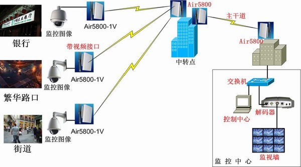 項(xiàng)目難點(diǎn)分析和解決辦法:該項(xiàng)目最大的難點(diǎn)是所用攝像點(diǎn)的圖像信號(hào)傳送到監(jiān)控中心所需要的帶寬和傳輸距離,使用一般的有線傳輸是無(wú)法克服傳輸距離和施工難度大的問(wèn)題,所有監(jiān)視點(diǎn)到監(jiān)控中心,全部采用無(wú)線的傳輸?shù)氖侄巍?/p>