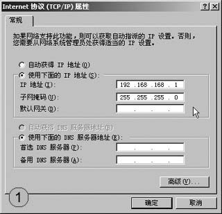 在配置IEEE 802.11b無線網(wǎng)絡(luò)時,最為關(guān)鍵的步驟便是對無線路由器進行設(shè)置。每臺無線路由器都有自身固定的IP地址,我們也正是通過對這一IP地址訪問來配置無線路由器的各項參數(shù)。以AboveCable的1100無線路由器為例,其IP地址為192.168.168.230,當(dāng)然,不同品牌型號的無線路由器的IP地址不盡相同,因此大家需要參閱廠商的技術(shù)資料。為了能夠訪問無線路由器的IP地址,我們必須使與之連接的網(wǎng)卡處于同一IP網(wǎng)段,在此例中便是將網(wǎng)卡IP指定為192.168.168.1(192.168.168.XXX都可以)(圖1)。
