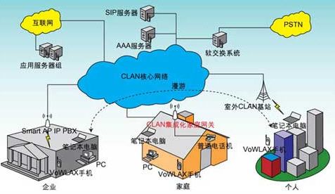 VoIP網(wǎng)絡(luò)電話為企業(yè)節(jié)省了通訊成本,然而要將VoIP在企業(yè)中大規(guī)模實(shí)現(xiàn),還需要解決很多問題,比如網(wǎng)絡(luò)升級(jí)、電源供給及提供緊急救援服務(wù)、包含分布等問題,盡管可以通過利用無(wú)繩電話系統(tǒng)來處理其VoIP分布及電源問題,但使用效果并不理想。然而無(wú)線網(wǎng)絡(luò)恰恰給了VoIP應(yīng)用的良好機(jī)會(huì),因?yàn)榛?02.11的無(wú)線數(shù)據(jù)網(wǎng)絡(luò)不但能進(jìn)行VOIP分布部署,同時(shí)也能順利完成語(yǔ)音實(shí)行功能,因此,VoWLAN(Voice over WLAN)就此誕生了。
