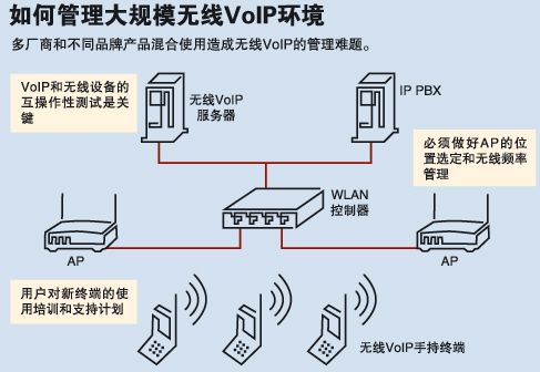 VoIP技術(shù)已經(jīng)日益被各企業(yè)所接受,為了進(jìn)一步解決成本,為企業(yè)用戶提供移動(dòng)性和方便性,如何在WLAN上部署VoIP(VoWLAN)成為企業(yè)用戶比較關(guān)注的話題,然而在傳統(tǒng)無(wú)線網(wǎng)絡(luò)架構(gòu)中,每個(gè)用戶連接到一個(gè)接入點(diǎn)(AP),而每一個(gè)接入點(diǎn)服務(wù)于一個(gè)單元,此時(shí)特在VoWLAN應(yīng)用中,該結(jié)構(gòu)將嚴(yán)重影響整個(gè)系統(tǒng)的性能和可靠性,比如減慢網(wǎng)絡(luò)速度、過大的延遲和抖動(dòng)、安全性不高等。實(shí)際上,成功部署VoWLAN包括三個(gè)要素:分析無(wú)線電頻率環(huán)境;評(píng)估網(wǎng)絡(luò)安全;調(diào)查無(wú)線網(wǎng)絡(luò)廠商的語(yǔ)音經(jīng)驗(yàn)和產(chǎn)品功能。